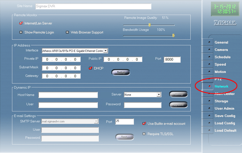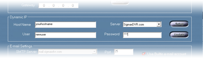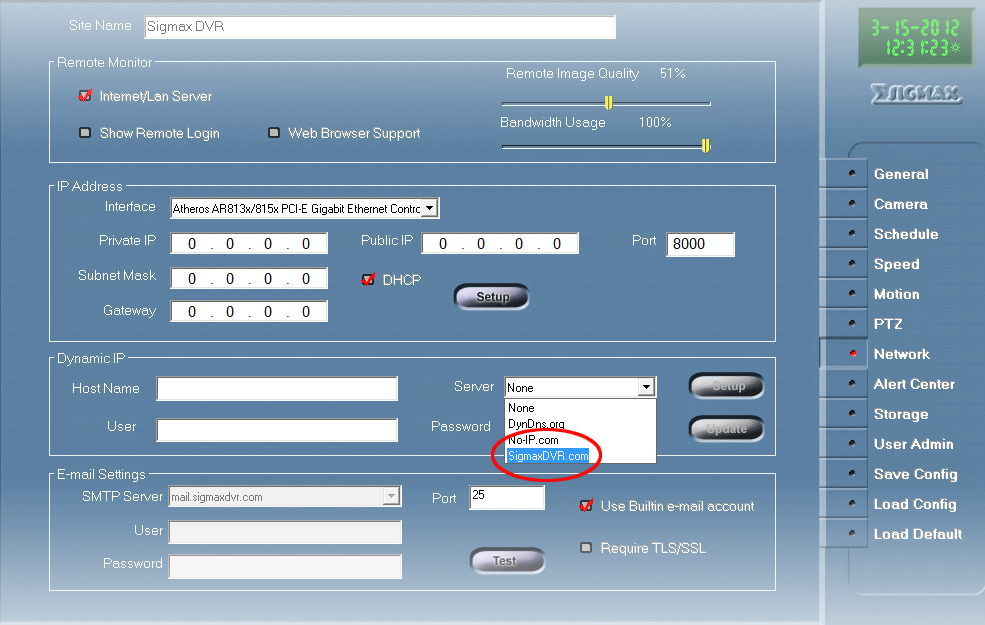 Select "SigmaxDVR.com" from the "Server" dropdown menu.